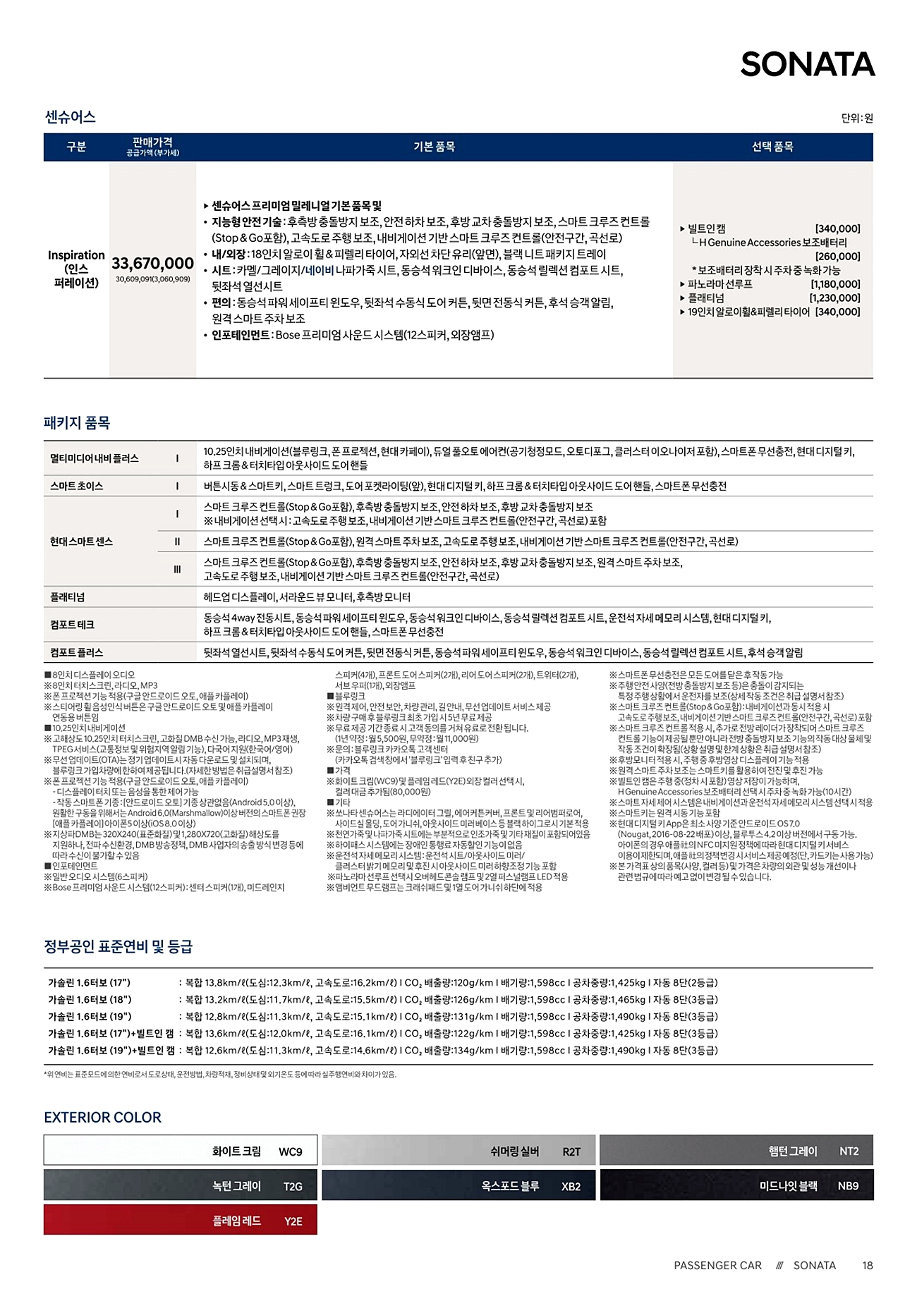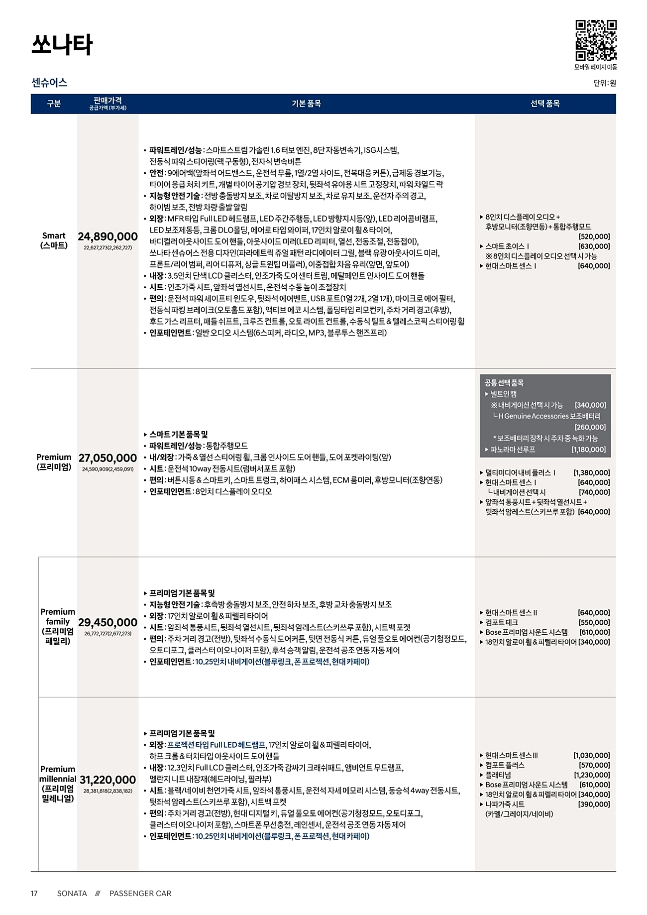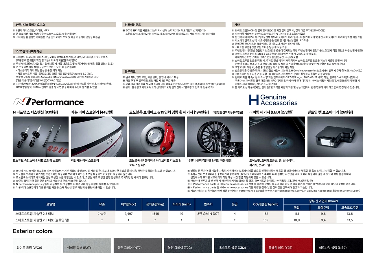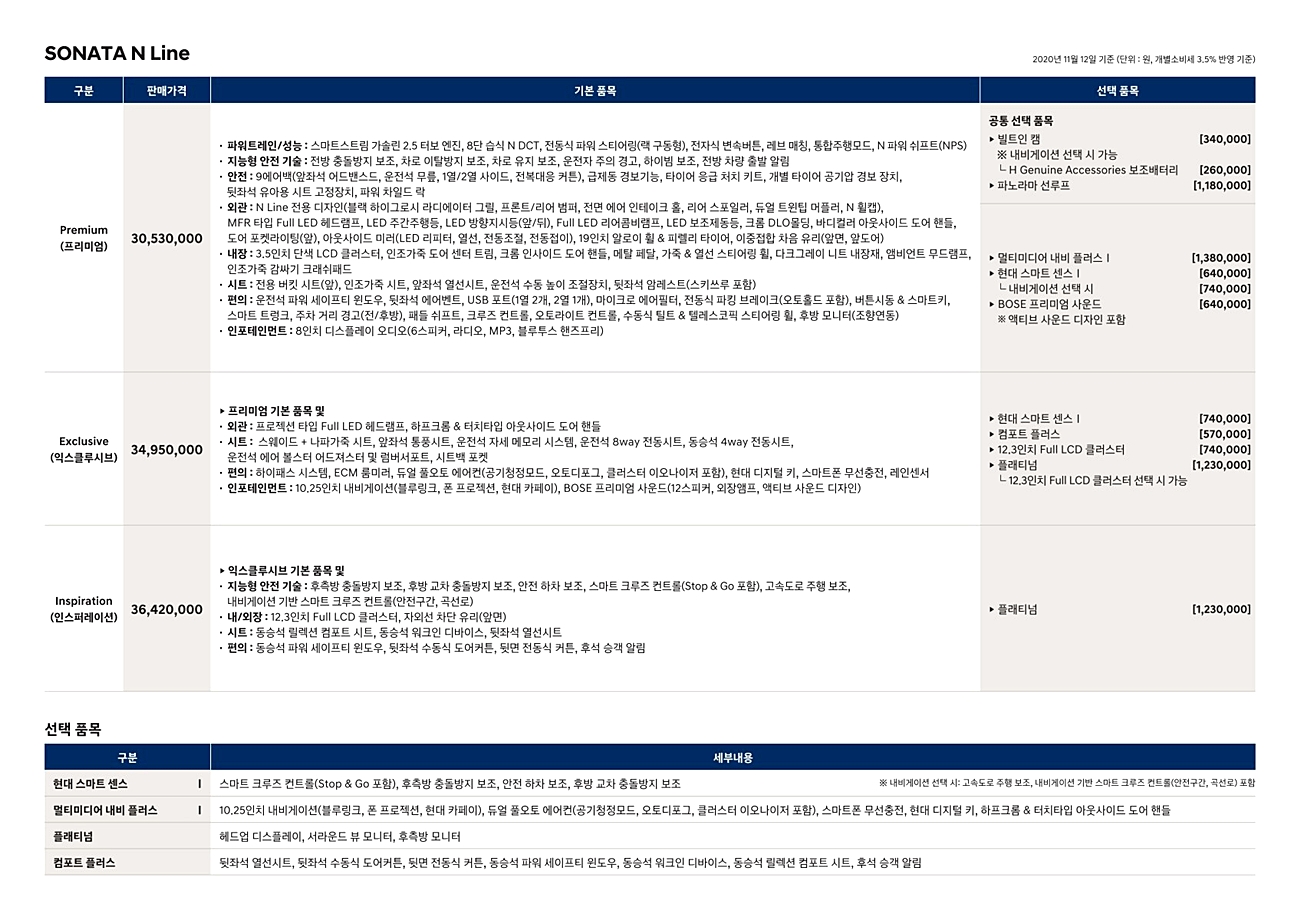 쏘나타 N라인 가격표(쏘나타 총 가격표)