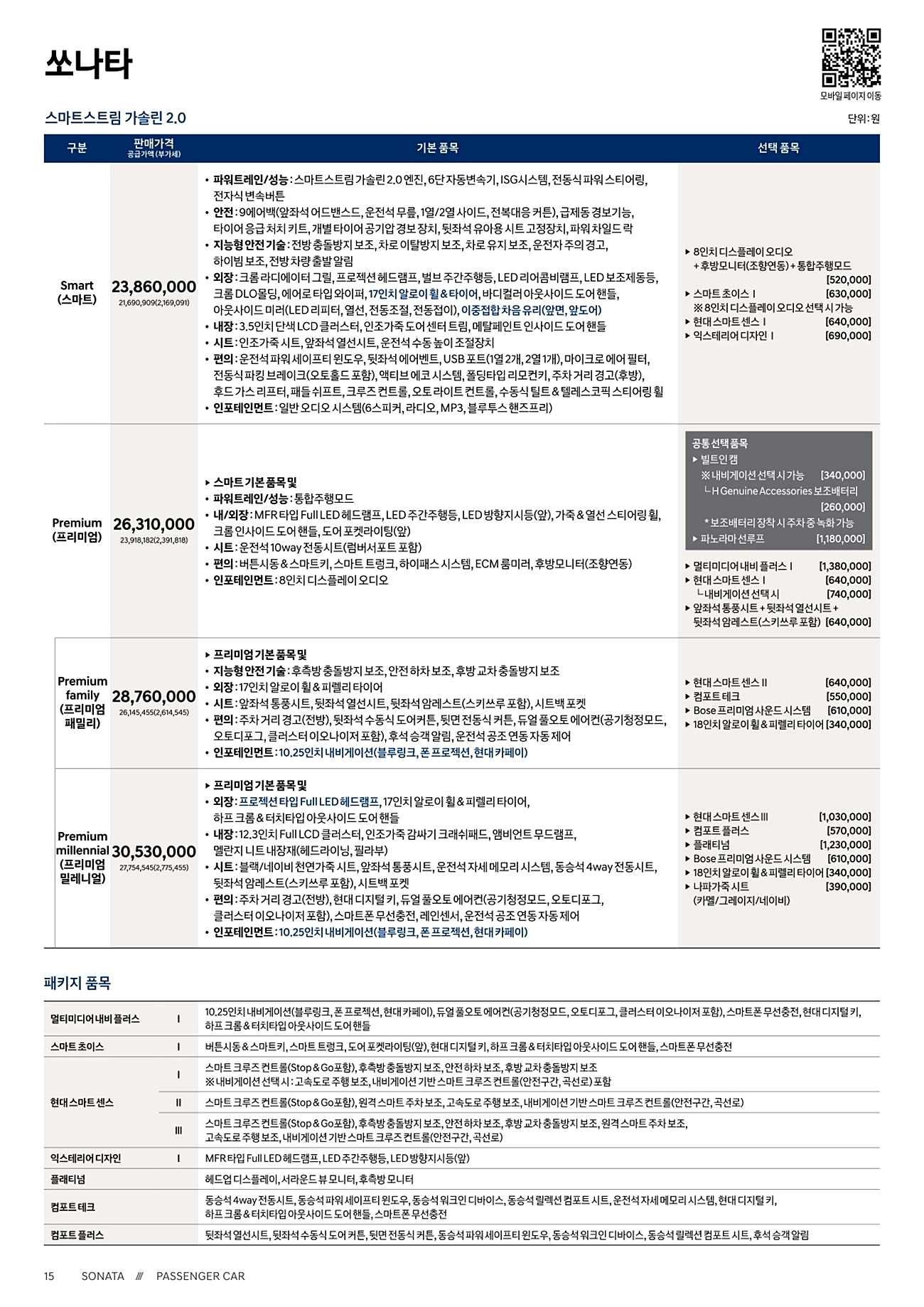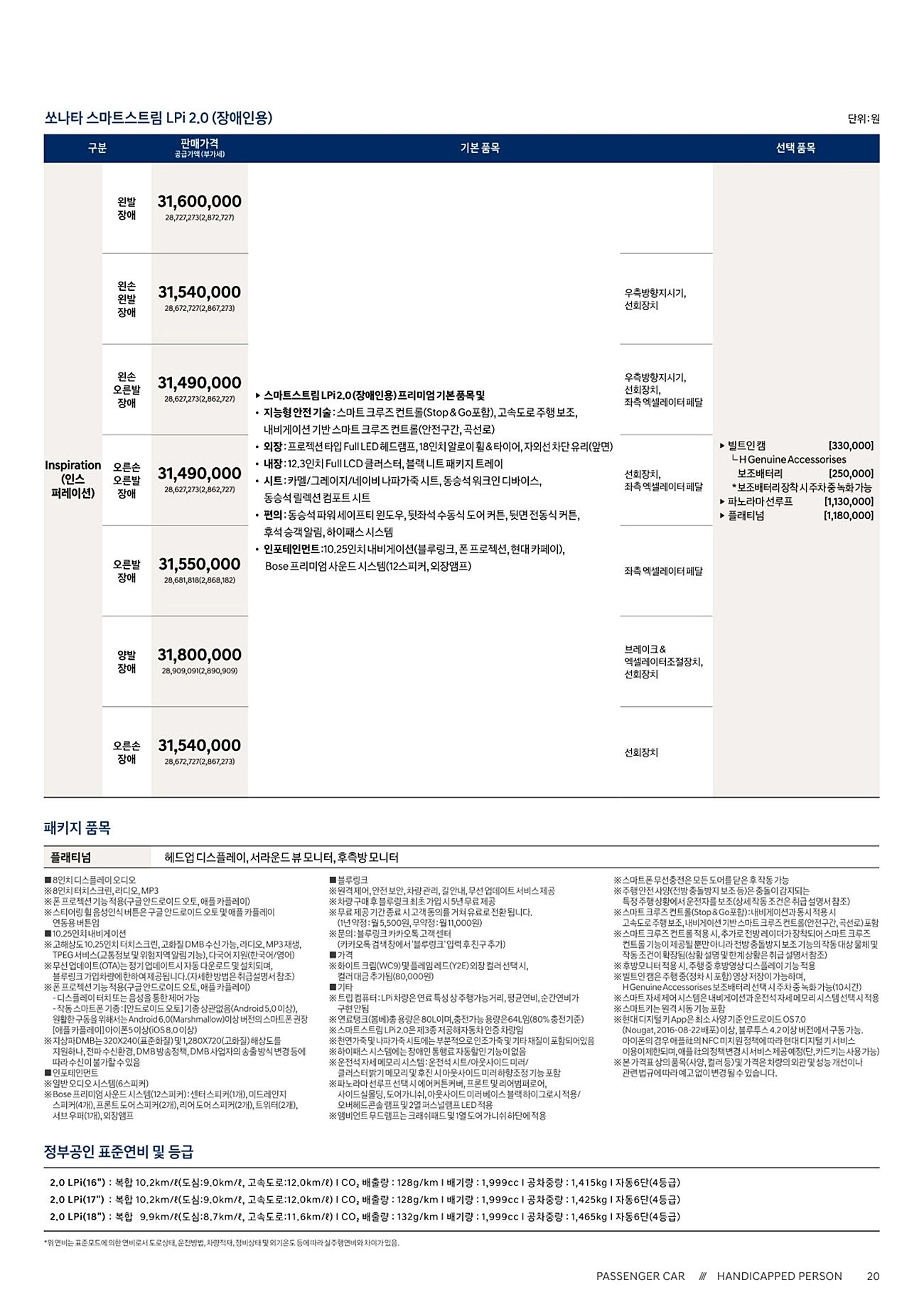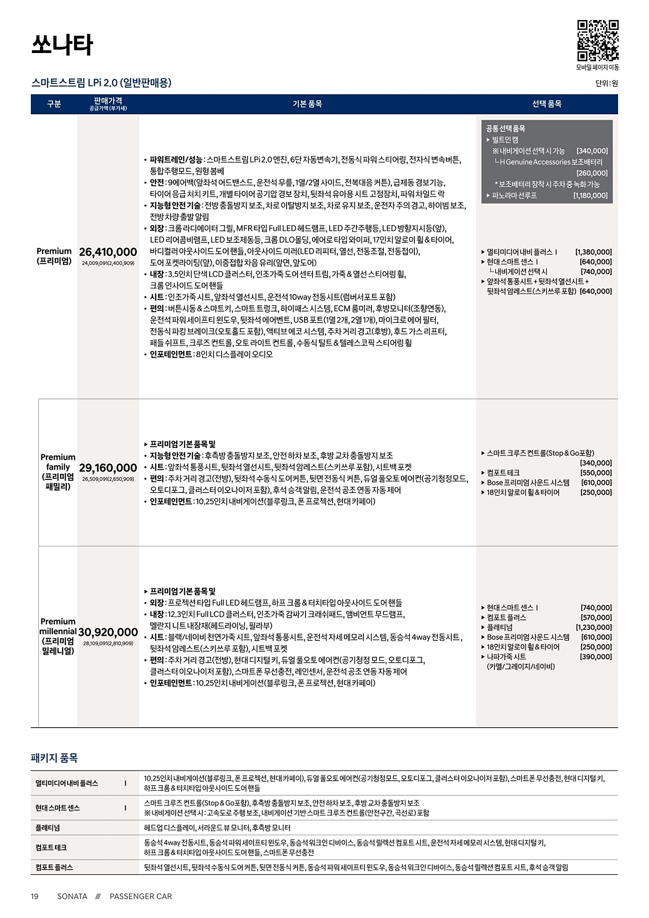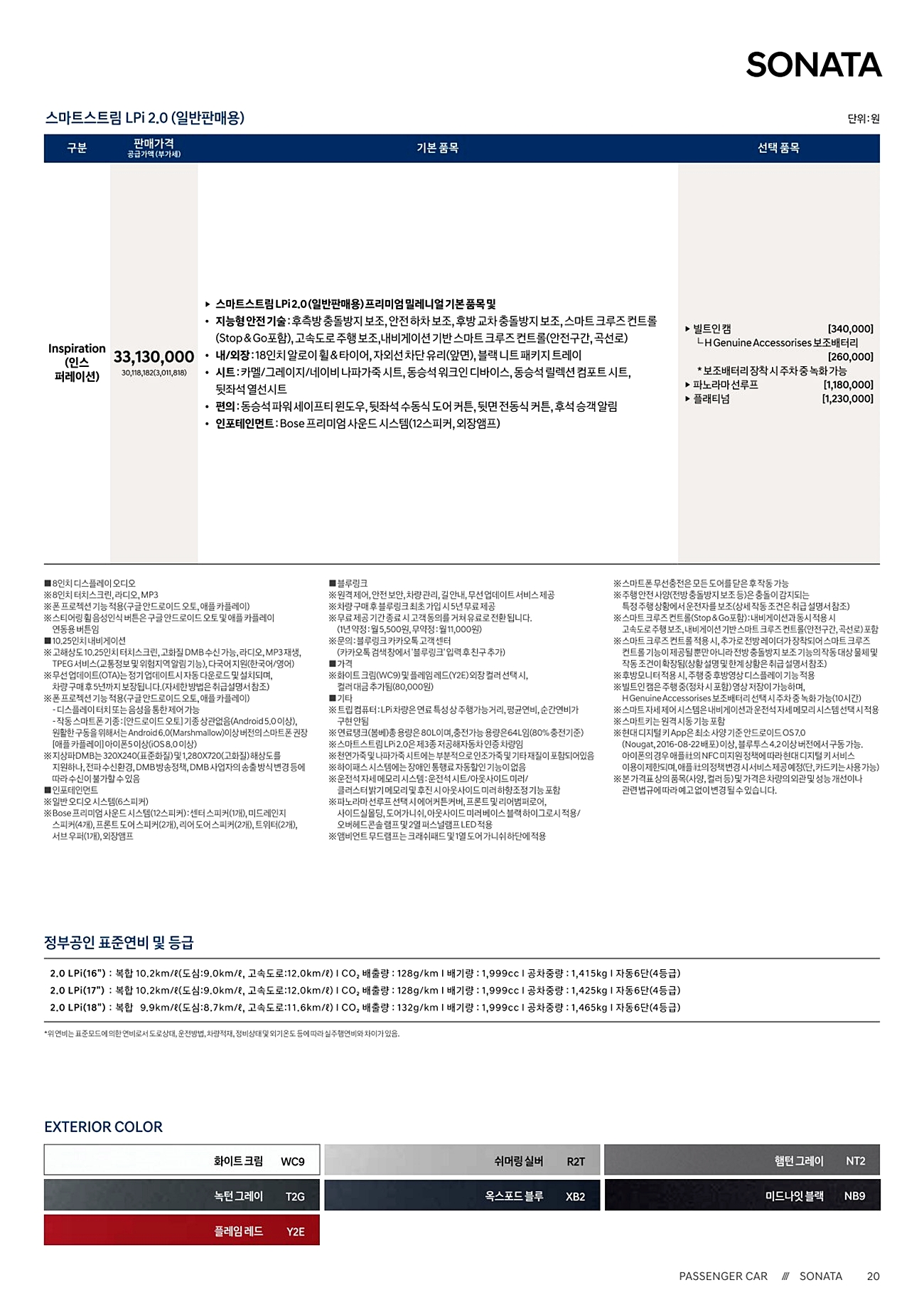 쏘나타 N라인 가격표(쏘나타 총 가격표)