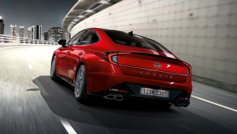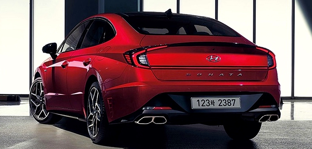 후면부 디자인에서 가장 강력한 모습을 보여주는 부분은 바로 머플러인데요. 쏘나타 N라인의 머플러는 듀얼 트윈팁 머플러를 적용하여 더욱 고성능의 느낌을 주고 있는 것 같습니다.