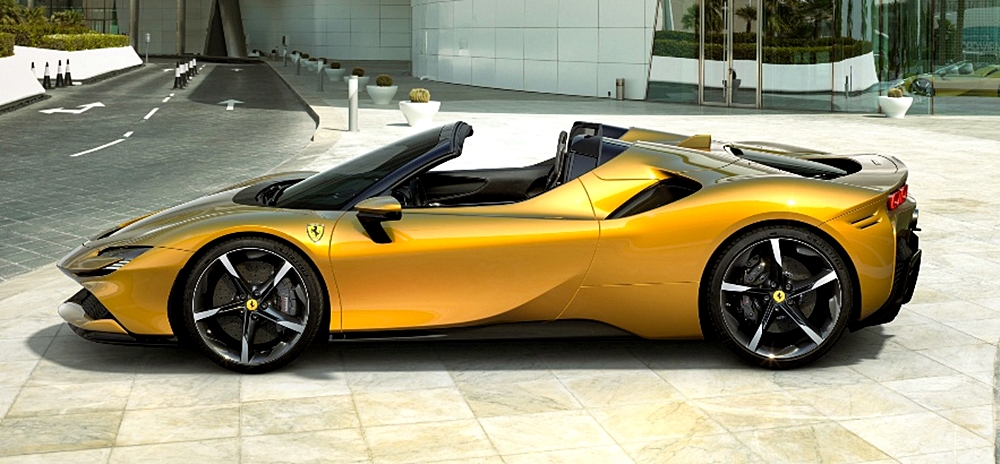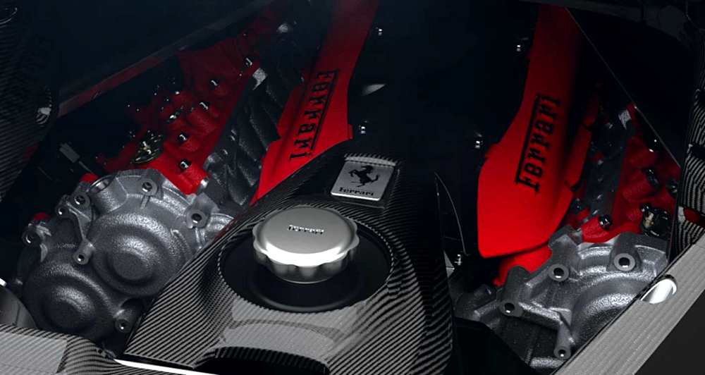 전기모터의 220마력의 높은 힘을 합산하여 시스템 최고 출력이 무려 1000마력의 힘을 발휘한다고 합니다. 이렇게 높은 성능을 발휘하는 SF90 스파이더의 성능을 감당하기 위해서 사륜 구동을 적용하여 차체의 안정감을 구현하고 있으며, 탄소섬유와 같은 고성능 소재를 적용하고 차체 중량 및 무게 중심은 낮게 설계하여 더욱 강력한 성능을 보여주고 있는데요.