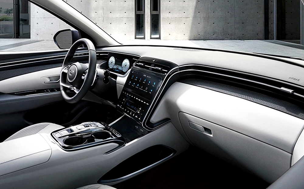 2021 투싼 하이브리드의 실내 인테리어는 출시 전부터 화재를 모았는데요. 특히 클라스터 디자인이 인상적이며, 대시보드가 이어지는 멋진 디자인이 미래지향적이다는 평가를 받고 있습니다. 신형 투싼 풀체인지 모델은 최초로 운전석 덮개가 없는 10.25인치 개방형 클라스터를 적용하여 더욱 신선한 느낌을 주고 있으며, 센터패시아 양 옆에서 시작해 대시보드를 거쳐 후석 도어 트림까지 이어지는 은빛 장식은 공간을 더욱 크게 보이는 시각적 효과를 주고 있습니다.