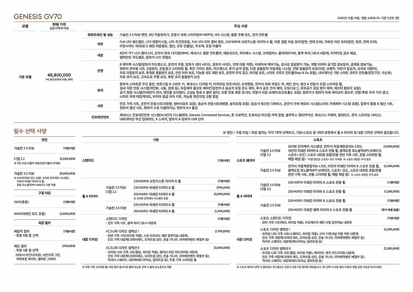 | 제네시스 GV70 가격표 4880~7550만원 (0) | 2020.12.15 |