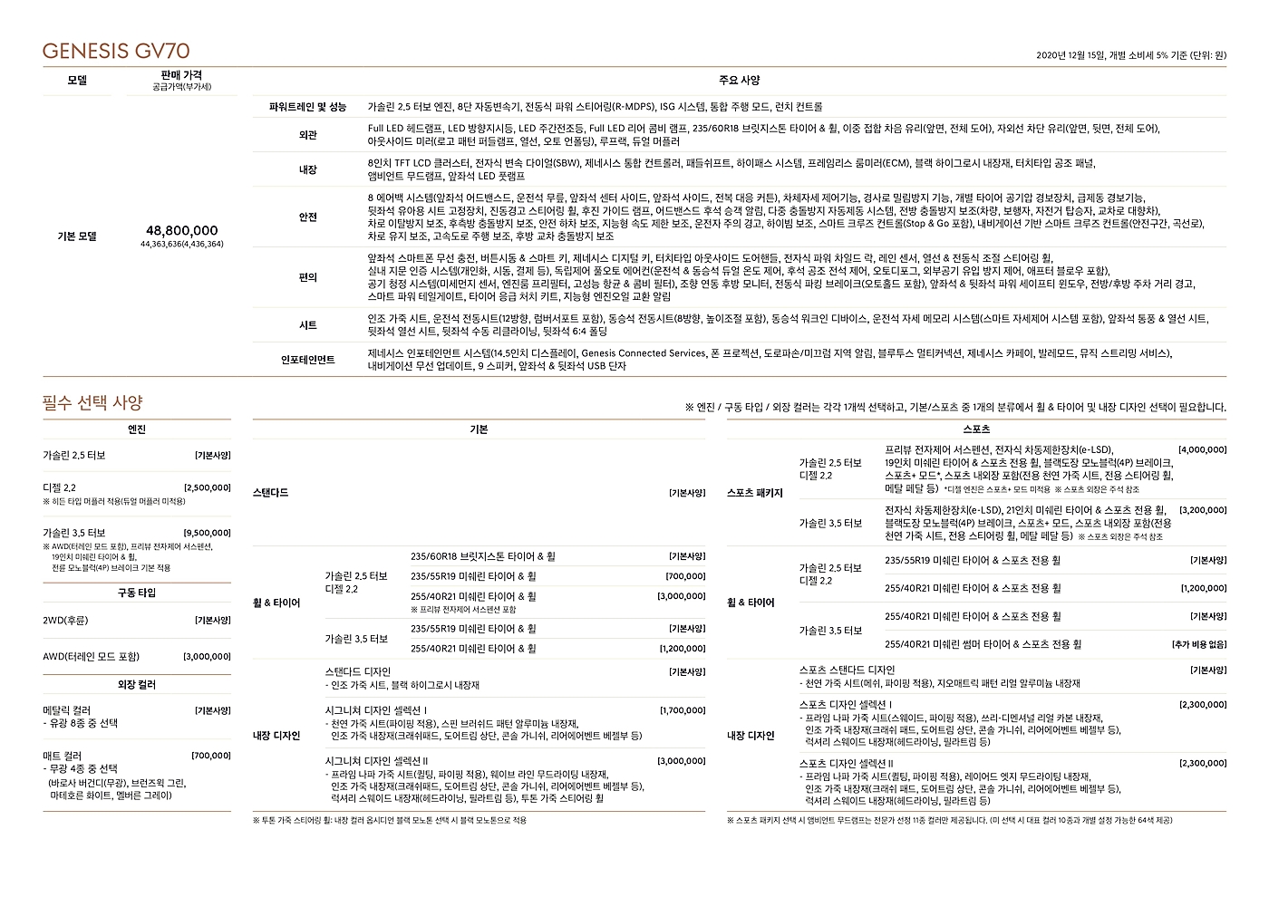| 제네시스 GV70 가격표 4880~7550만원 (0) | 2020.12.15 |