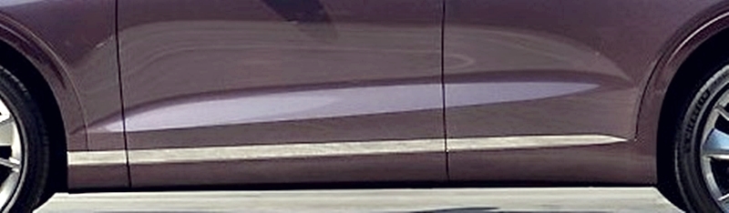 도어 부분에도 오목하게 들어가면서 더욱 역동적인 느낌이 들며, 하단 사이드 부분에는 앞 펜더 하단에서 뒷도어까지 이어지는 크롬 라인은 상승하는 듯한 느낌을 주면서 고급스러운 느낌을 보여주고 있어요.
