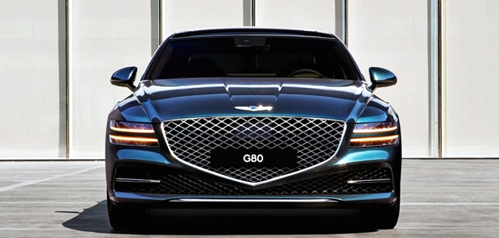 제네시스 G80의 디자인은 전면의 5 각형 방패 모형의 크레스트 그릴이 자리하고 있고, 양쪽으로는 두줄로 멋있는 모습을 보여주는 쿼드 램프를 적용하여 제네시스 브랜드만의 디자인 패밀리룩을 만들었습니다.