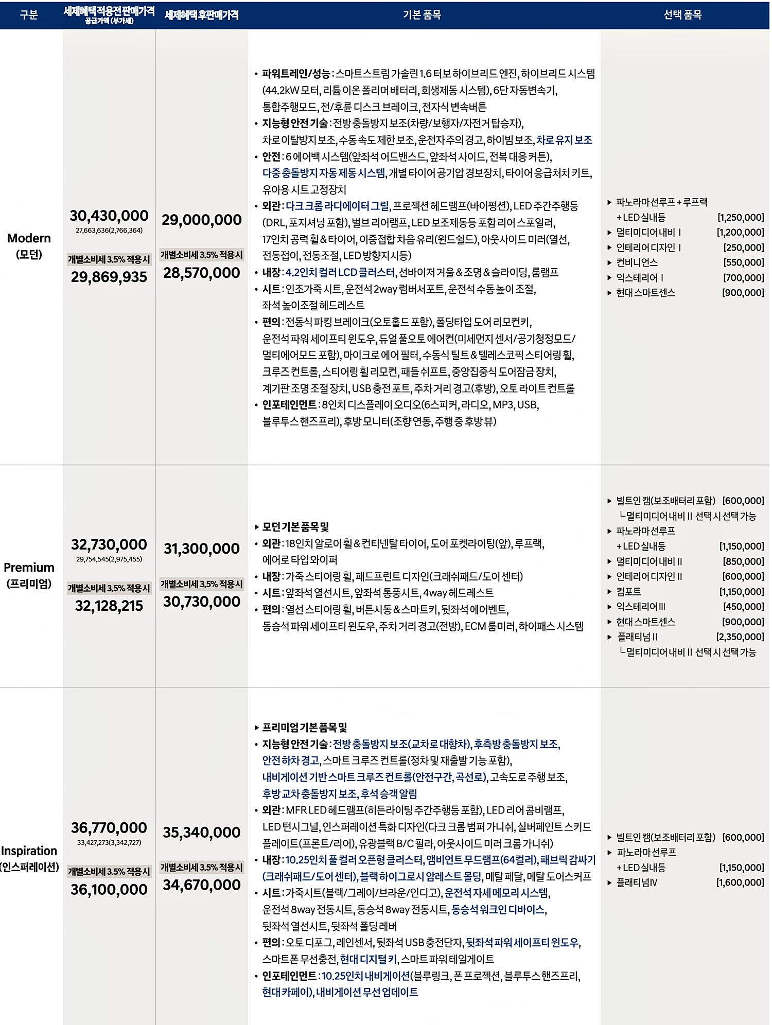 투싼 하이브리드의 판매 가격은 2857만 원~3467만 원으로 책정이 되었습니다. 자세한 가격은 아래의 2021 투싼 하이브리드 가격표를 참고해주세요.