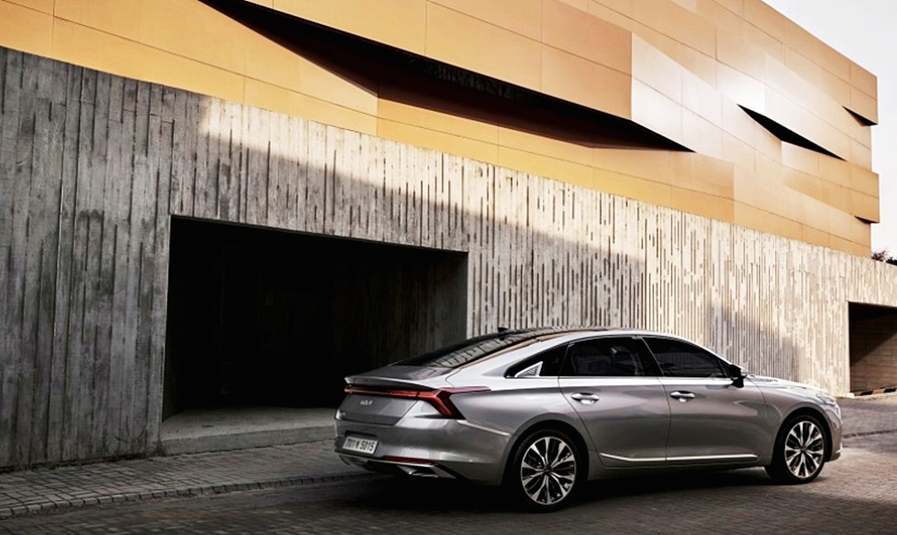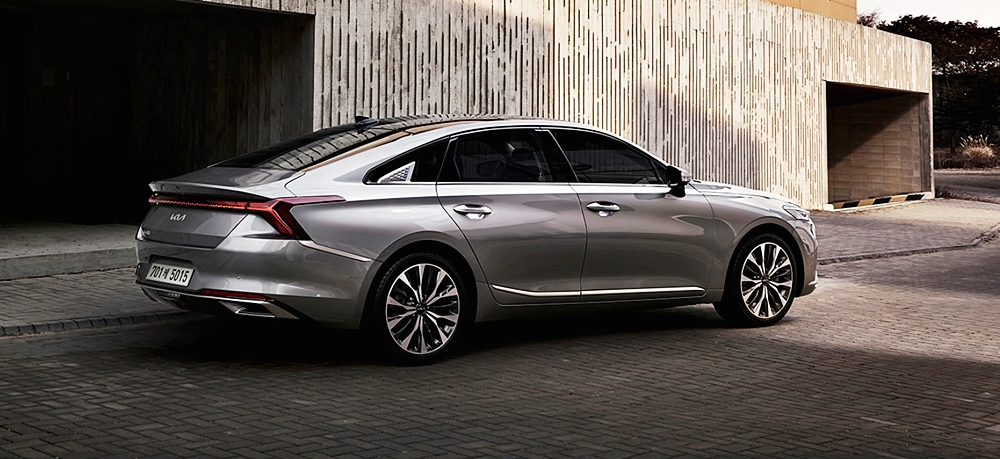 헤드램프에서 부드럽게 후면으로 이어지는 캐릭터 라인은 고급 요트가 물 위를 달리는 모습에서 영감을 받았다고 하는데요. 유선형의 캐릭터 라인은 우아하고 역동적인 K8의 이미지와 잘 어울리는 것 같습니다. 긴 보닛 라인과 짧은 전방 오버행 그리고 트렁크 리드까지 이어지는 시원한 루프라인은 스포티한 감성을 주는 쿠페를 보는 듯한 느낌입니다.
