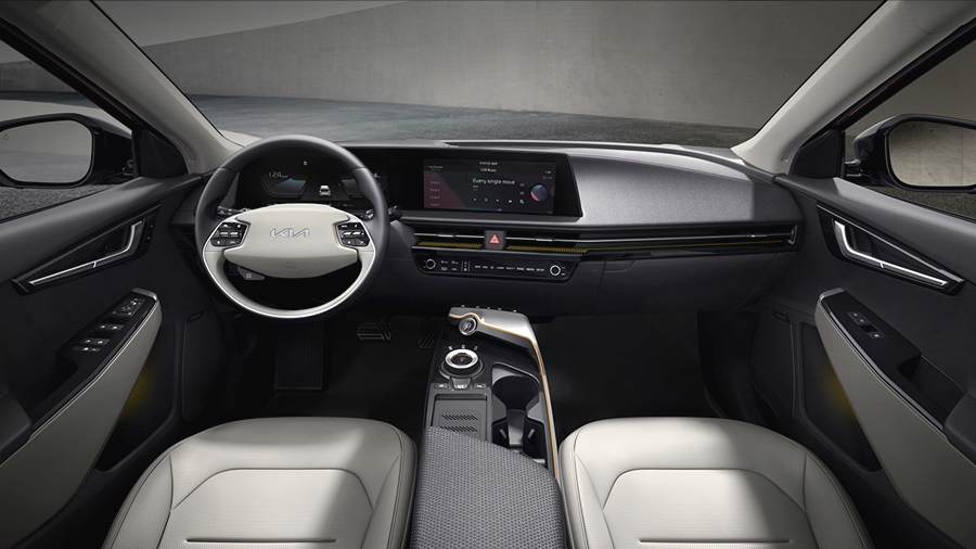 기아 ev6 실내 인테리어는 심플한 느낌으로 기아의 전기자동차의 방향성을 알아볼 수 있습니다.