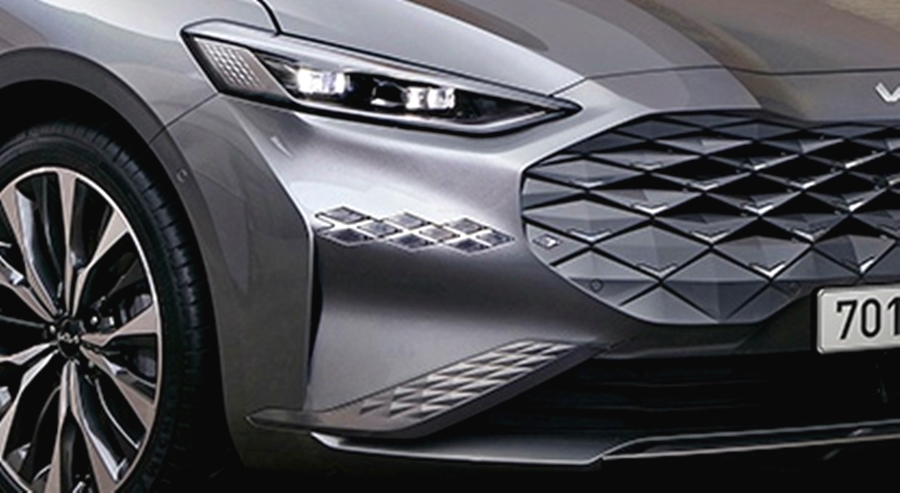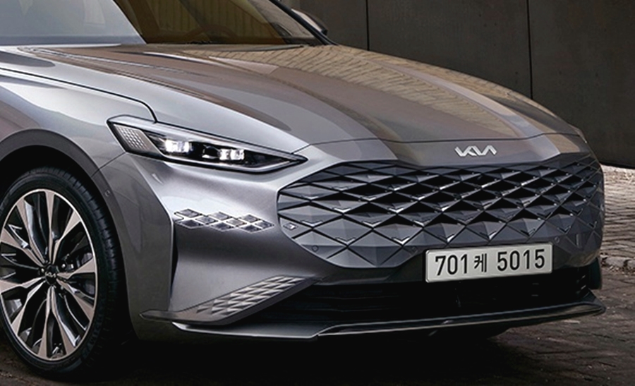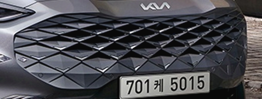 기아 K8에 신규로 적용된 기아 엠블럼은 차량을 더욱 고급스럽게 만들어 주고 있으며, 기아자동차의 패밀리룩으로 사용되고 있는 타이거 노즈 그릴의 경우 테두리의 경계가 없는 독특한 일체형 범퍼를 사용하여 미래지향적인 전기자동차의 느낌도 듭니다. 그릴의 경우 다이아몬드에서 영감을 받아 제작이 되었다고 하는데요. 상당히 고급스러운 느낌을 줍니다.