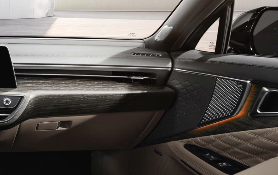 기아 K8에는 고급 자동차의 대표적인 소재인 고급 가죽시트와 우드를 적용하였는데요. 퀼팅 시트가 적용되어 더욱 고급스러운 느낌을 주고 있으며, 이는 도어트림까지 적용되어 프리미엄 세단이라는 것을 한눈에 알 수 있습니다.