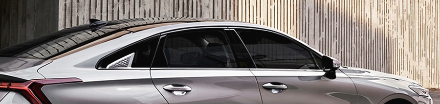 루프라인에서 후면 트렁크로 이어지는 라인은 마치 패스트백 차량이나 쿠페형 세단의 이미지를 주고 있습니다. 이를 통해 차량을 더욱 역동적이고 스포티하게 보여주는 역할을 하고 있습니다. 또한, 도어 글라스 하단의 크롬 라인 끝에는 상어의 지느러미 같은 모형으로 기아의 최신 아이덴티티 디자인이 반영되었습니다.