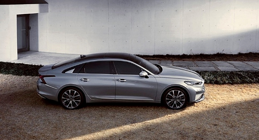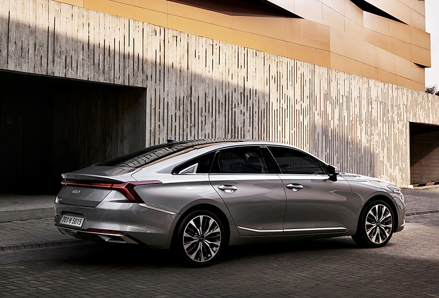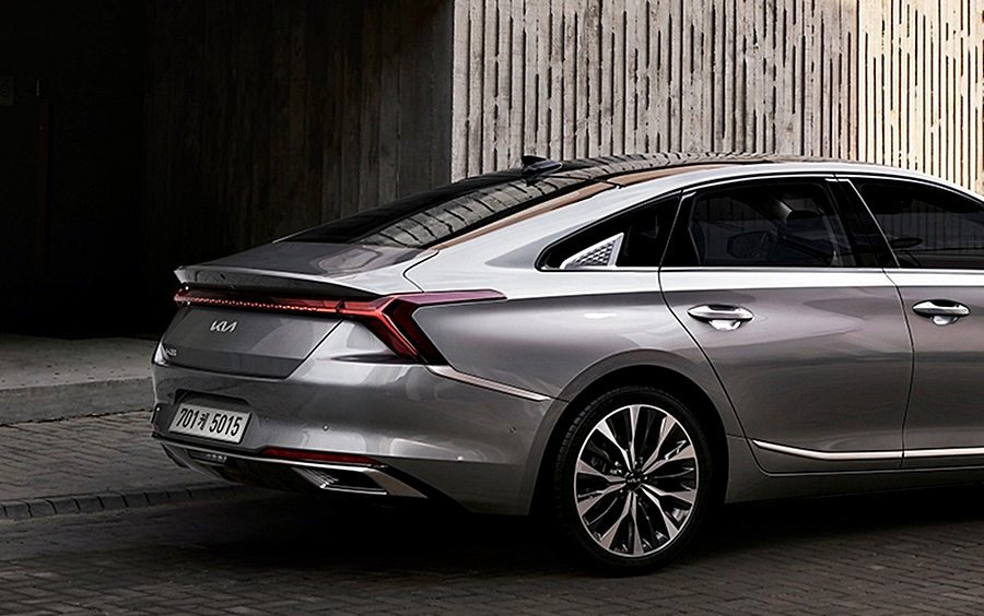 또한, 다이아몬드 패턴을 적극 사용하여 고급스러움을 극대화하였으며, 기존에 비해 길어진 5M가 넘는 전장을 통해 차량을 웅장한 느낌이 나게 만들었습니다. 또한, 쿠페형 세단을 보는 듯한 세련된 루프라인을 통해 기존 K7이 생각이 나지 않을 정도로 놀라운 디자인 변신이 보이네요. 기아 K8 후면에서는 서로 이어지는 리어 램프 LED DRL을 독창적인 느낌으로 제작하였고, 램프에 볼륨감을 주면서 더욱 신형 같은 모습을 보여주고 있습니다.