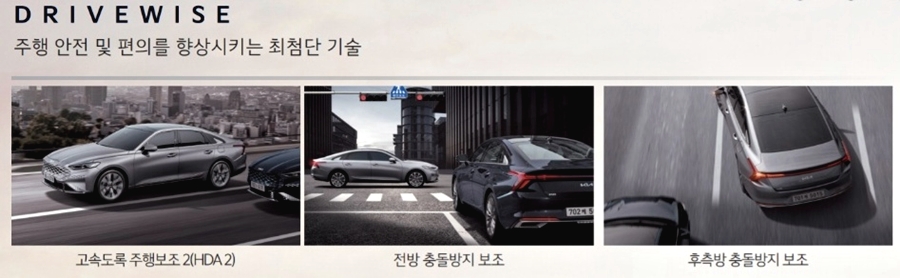 기아 K8의 첨단 안전사양으로는 고속도로 주행 보조 2가 적용되었는데요. 고속도로 주행 보조 2의 경우 더욱 진보된 기술로 제네시스 G80에 들어가는 첨단 사양입니다. 고속도로 주행 보조 2란 고속도로 및 자동차 전용도로 주행은 물론 방향지시등 스위치 조작으로 차로를 변경을 도와주는 역할을 하며, 주행 중에 옆 차량과 가까워지는 경우 위험하지 않도록 차로 내 편향 주행을 하는 등의 다양한 상황에서 운전자의 안전을 보호해주는 좋은 기능입니다.
