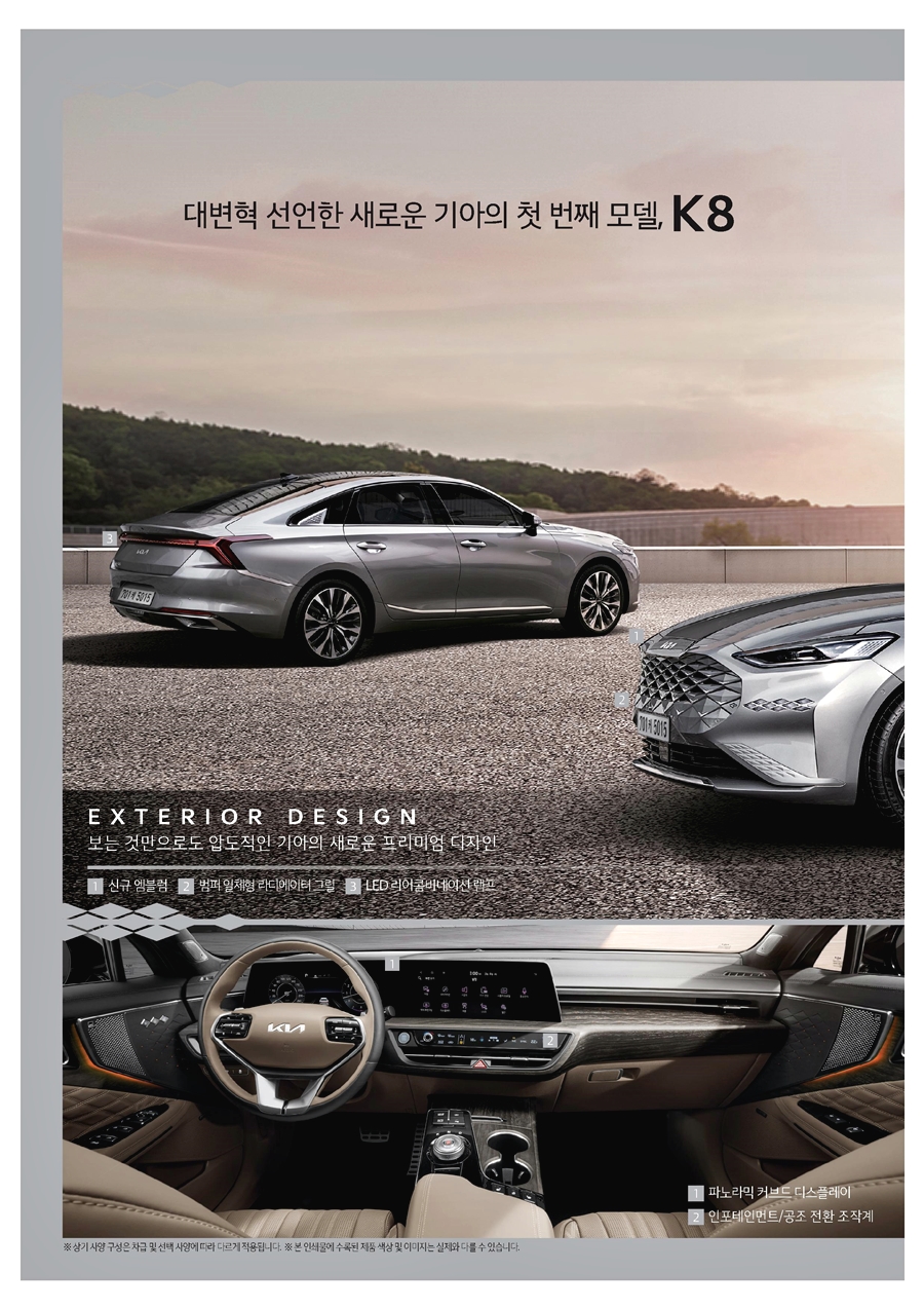 기아 K8이 정말 사고칠 것 같은데요. 사전계약 첫날 하이브리드 엔진이 없이, 약 1만 8천대라는 놀라운 사전계약을 보여주었고, 이제는 준대형 세단에서 그랜저를 앞지를 것으로 예상되는데요. 그렇기 때문에 그랜저 풀체인지 모델도 기대가 되는 부분이네요. 서로 경쟁하면서 소비자들에게는 즐거운 선택이 될 수 있었으면 하네요. 지금까지 기아 K8 신형 풀체인지 모델에 대한 간단한 리뷰였습니다. 감사합니다.