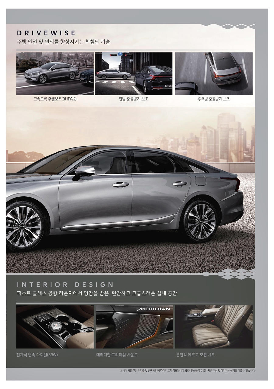 기아 K8 시트와 도어트림에는 고급 가죽 소재를 사용하였고, 여기에 퀼팅이 들어가면서 고급 자동차를 타는 느낌을 더욱 받을 수 있으며, 운전석 에르고 모션 시트가 적용되는데, 이는 기아차 최초가 아닌가 싶습니다. 현대자동차의 프리미엄 브랜드 제네시스에서만 에르고 모션 시트가 적용되는 줄 알았는데, 기아 K8에도 적용되었다는 점이 신선하네요. 그리고 사운드는 14개의 스피커가 들어가는 프리미엄 사운드 시스템인 메리디안 프리미엄 사운드 시스템이 적용되면서 드라이빙의 감성을 자극시켜 줄 것 같습니다.