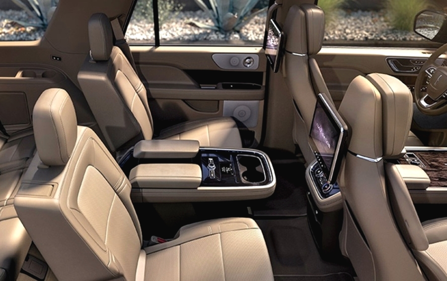 링컨 네비게이터의 실내 인테리어는 수평을 중심으로 디자인하여 평온한 느낌과 동시에 넓은 공간성을 올린 모델이라고 할 수 있습니다. 또한, 최상급 소재를 사용하여서 에비에이터보다 좋은 모습을 보여주고 있습니다.