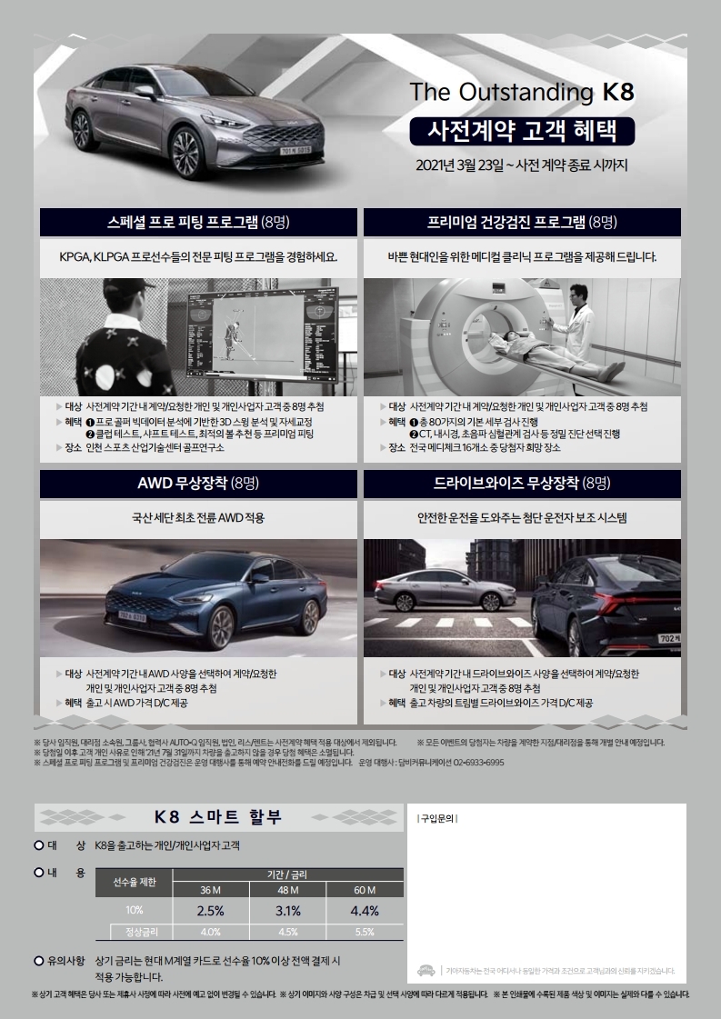 | 기아 K8 사전계약 혜택(가격표) (0) | 2021.04.05 |