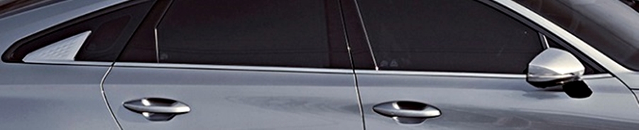 기아 K8의 아웃사이드 미러는 LED 리피터 일체형 아웃사이드 미러를 사용하고 있는데요. 이는 슬릭 하고 역동적인 이미지가 강조된 플래그 타입 아웃사이드 미러를 보여주고 있습니다. 전면 도어 글라스 하단에서 시작된 크롬 라인은 후면 쿼터 글라스까지 이어지게 되는데, 후면 쿼터 글라스에서는 날렵하게 쏟아있는 크롬을 만나보실 수 있는데요. 이는 상어의 지느러미를 연상시키고 있습니다. 이 디자인 역시 기아에서 밀고 있는 디자인 같은데요. 기아 카니발, 쏘렌토 등에 사용되는 이 디자인은 기아의 아이덴티티 디자인으로 안쪽에는 다이아몬드 패턴이 들어가 있습니다. 이 디자인의 경우 약간의 호불호가 있겠지만, 기아의 신선한 디자인이라 앞으로 꾸준히 사용되지 않을까 생각됩니다.