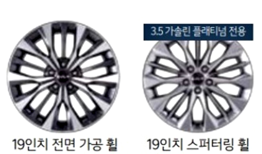 기아 K8의 휠 디자인은 총 4가지 구성으로 되어 있습니다. 17인치 알로이 휠, 19인치 전면가공 휠, 19인치 전면가공 휠, 19인치 스퍼터링 휠로 구성되어 있는데요. 기아 K8의 다이내믹한 이미자와 매칭 되는 디자인으로 존재감 있는 휠 디자인을 가지고 있어 많은 분들께 사랑을 받을 것 같습니다. 개인적으로는 19인치 스퍼터링이 가장 마음에 듭니다.