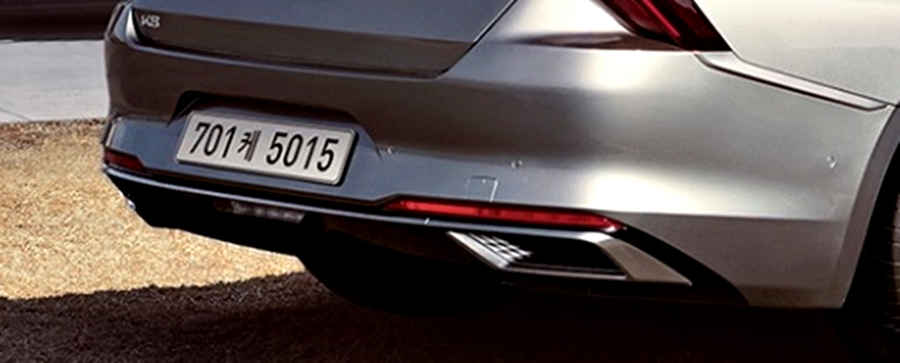 기아 K8 후면부 중앙에는 전면과 동일한 기아 신형 엠블럼이 자리하고 있어 고급스러운 느낌을 주고 있습니다. 기존의 엠블럼이 들어갔다면, 다소 저렴해 보일 수 있는데, 이번 신형 엠블럼이 자리하고 있기 때문에 이런 느낌도 주는 것 같네요. 또한, 기아 K8의 로고 글씨체가 바뀌면서 기아의 새로운 이미지를 완성시켜 주고 있습니다. 리이 범퍼 하단 중앙에는 후진 등이 적용되었고, 양쪽으로는 크롬으로 이어진 듀얼 머플러 형식이 적용되어 안정적이고 고급스러운 프리미엄 세단의 이미지를 후면에서도 만나보실 수 있습니다.