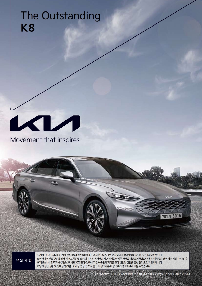 많은 사람들은 전면부 디자인이 "이상하다"라는 말을 했지만, 사전계약이 그런 부분을 사라지게 만든 것 같네요. 기아 K8의 본격적인 출시일은 2021년 4월 8일로 예정이 되어 있는데요. 상황에 따라서 추후 변경이 될 수 있습니다.