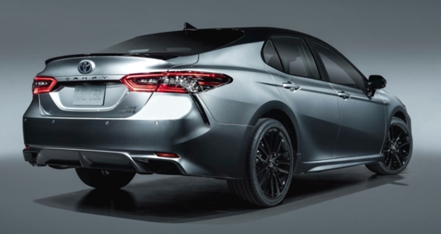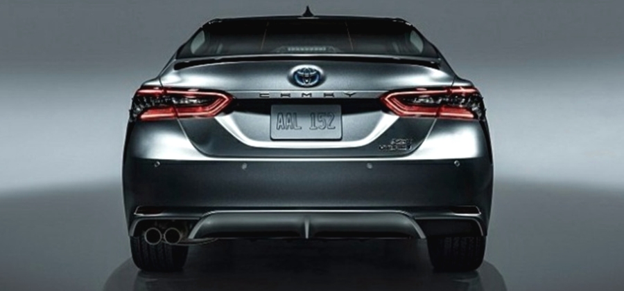 2022년형 캠리 하이브리드 XSE 모델의 외관 디자인은 전면의 프런트 범퍼 좌우가 길어지게 하며, 가로의 선이 삭제가 되면서 육각형 패턴을 촘촘하게 넣어 심플하면서도 공기역학적인 모습을 보여주는 역동적인 디자인을 갖추고 있으며, 테일램프의 경우 공기 통로 장식을 추가하여 기존의 1개의 머플러에서 2개로 멋지게 적용되었습니다.
