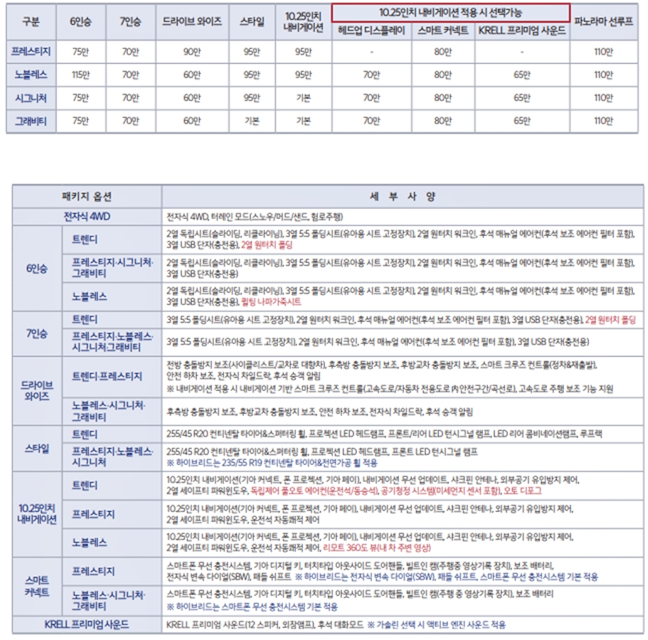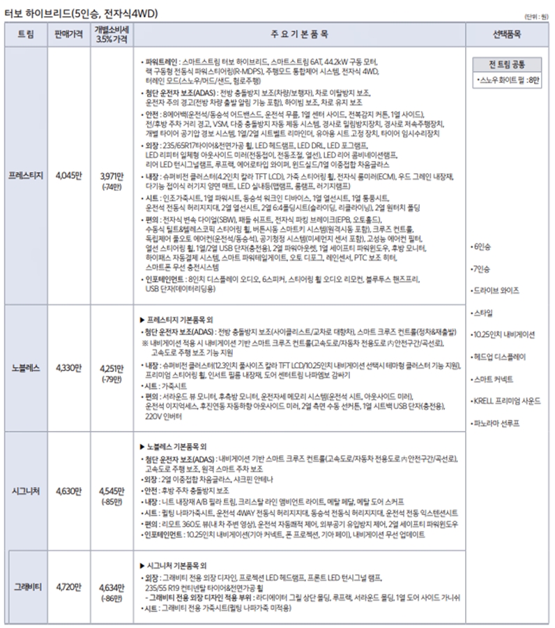 쏘렌토 하이브리드 가격표 2023년식 변경