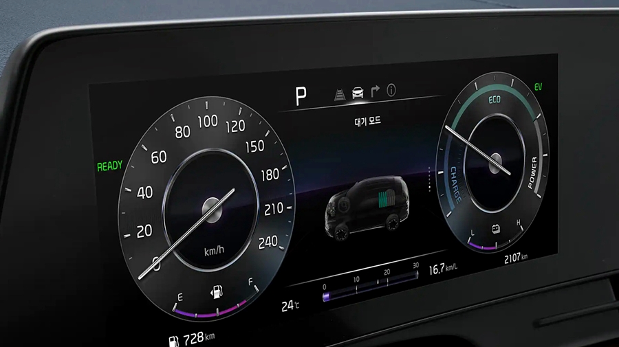 스포티지 하이브리드의 실내 인테리어는 동일한 플랫폼을 사용하는 현대 투싼과는 다른 느낌으로 제작이 되었는데요. 특히, 파노라믹 커브드 디스플레이가 적용되었어요. 이는 한 체급 높은 기아 쏘렌토 보다 더욱 큰 사이즈의 디스플레이를 적용한 것이 특징이네요.