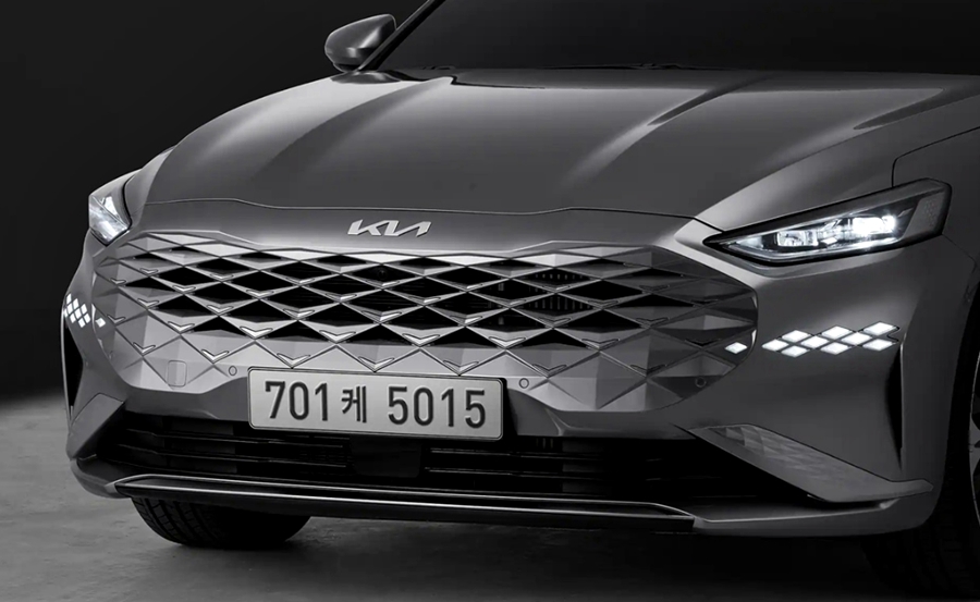 전면부 디자인은 라디에이터 그릴이 고급스럽게 느껴지는데요. 처음에는 다소 신기한 모습을 가지고 있었어요. 라디에이터 그릴이 범퍼와 일체형이었기 때문이죠. K8의 라디에이터 그릴은 테두리가 없는 일체형 그릴을 선택했는데, 이는 마치 전기자동차의 느낌을 주며, 미래지향적인 느낌까지 주었기 때문이에요.