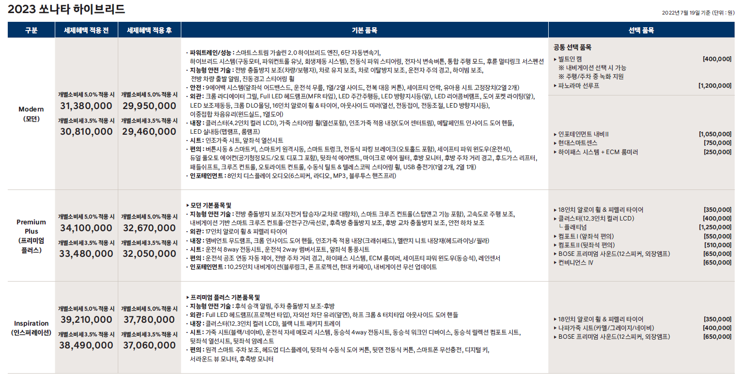 쏘나타 하이브리드 가격표 첨부파일 2023