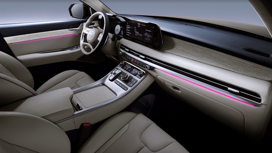 이를 통해서 쿨 그레이 컬러를 적용하게 되었습니다. 쿨 그레이 컬러를 적용하게 되면서 기존 팰리세이드에 무게감을 더하게 되었는데요. 또한, 현대 팰리세이드 내부에는 1열 전동 시트, 천연 가죽시트, 12.3인치 클라스터를 적용하여 더욱 편리한 드라이빙을 선사하고 있죠.