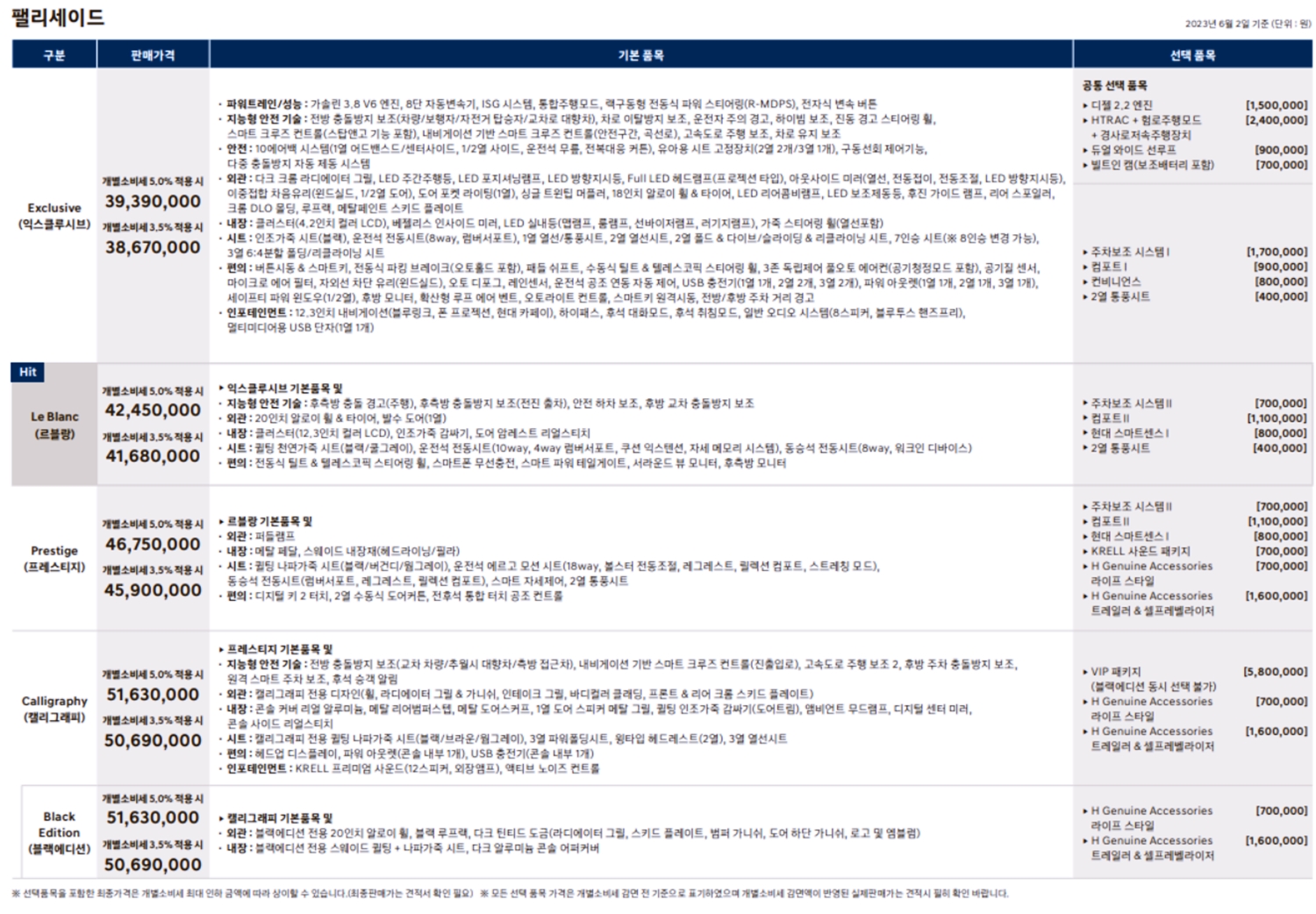 2024년형 현대 팰리세이드는 트림별 안전 및 편의사양을 최적화하고 가격 인상을 최소화하여 상품성과 가격 경쟁력을 강화했습니다.