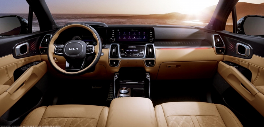 그리고 실내에서 가장 크게 변화하는 부분은 바로 디스플레이의 크기인데요. 기존 10.25인치 디스플레이는 조금 작아 보일 수 있는 부분이지만, 쏘렌토 풀체인지 모델의 실내는 디스플레이 크기를 12인치 이상으로 키운 디스플레이가 들어갈 것으로 보입니다. 독립적으로 디스플레이를 키운 느낌으로 출시될 가능성도 있지만, 최신 디자인답게 커브드로 클라스터와 통합되어 나올 가능성도 높기 때문에 이 부분은 실제 차량이 출시가 되면 알 수 있을 것으로 보입니다.