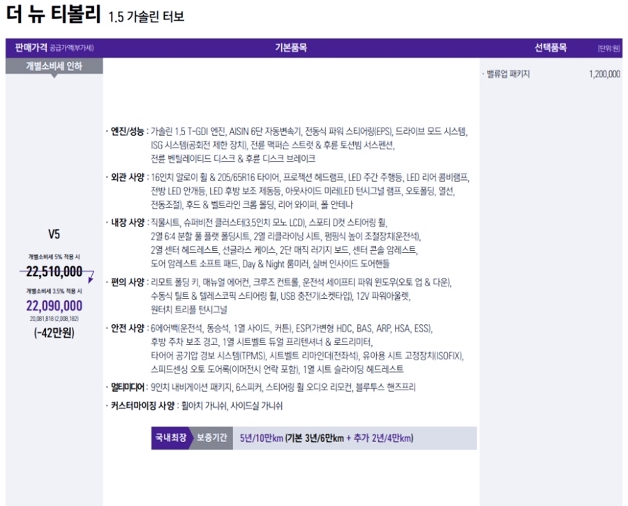 2024년형 티볼리의 판매가격은 1883만 원~2785만 원으로 책정이 되었는데요. 요즘 나오는 소형 SUV 모델 풀옵션이 4천만 원에 육박하는 시기에 1883만 원 시작은 매우 저렴하게 느껴지는 가격 책정이라고 할 수 있겠네요. 자세한 가격은 아래의 2024년형 티볼리 가격표를 참고하시면 도움이 될 것 같나요.
