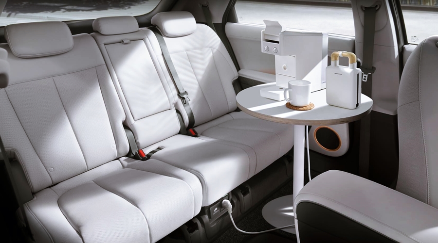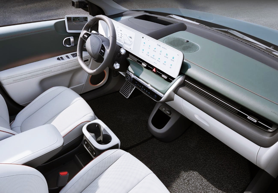 클라스터와 디스플레이가 하나로 연결된 느낌으로 실내를 연출하여 미래지향적인 전기자동차의 느낌을 주고 있는데요. 그밖에 편의기능으로는 플랫 플로어, 유니버설 아일랜드 등을 적용하여 공간을 더욱 최적화할 수 있게 해주고 있으며, 디지털 사이드미러를 통해 선명한 측 후면 시아를 제공하고 있어요.