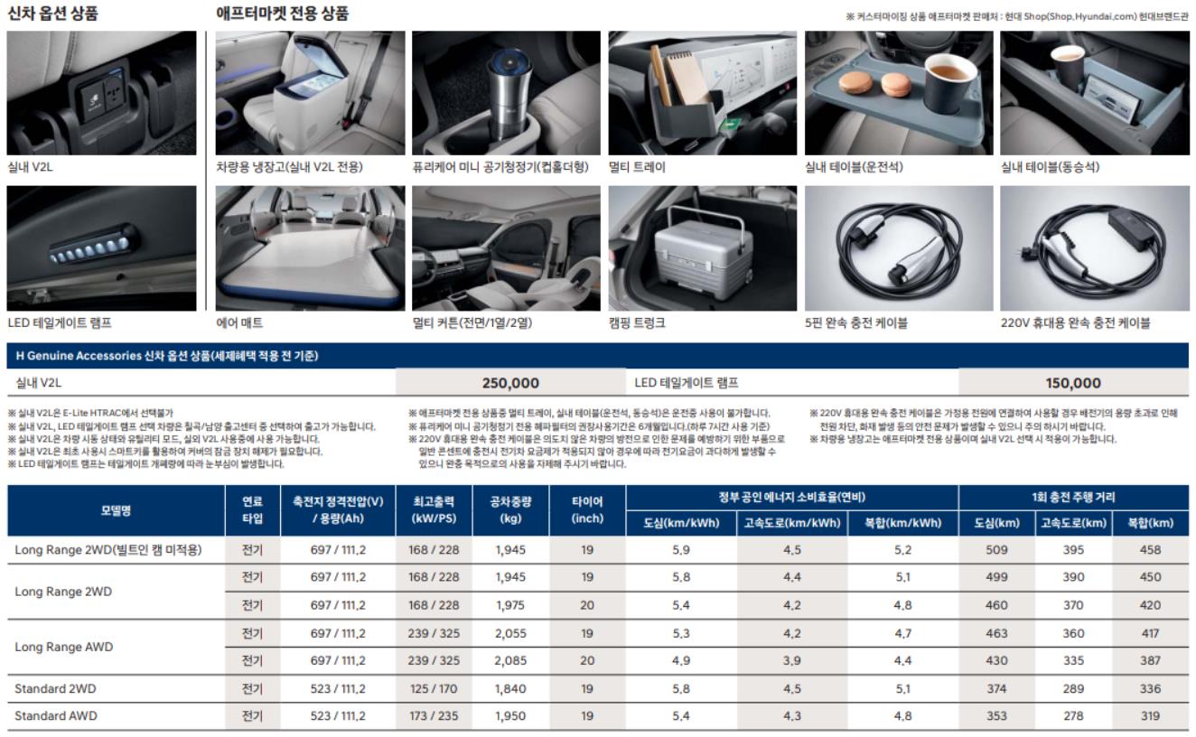 아이오닉 5의 판매가격은 5005~6132만 원으로 책정이 되었는데요. 제사한 내용은 아래의 가격표를 참고해 주세요