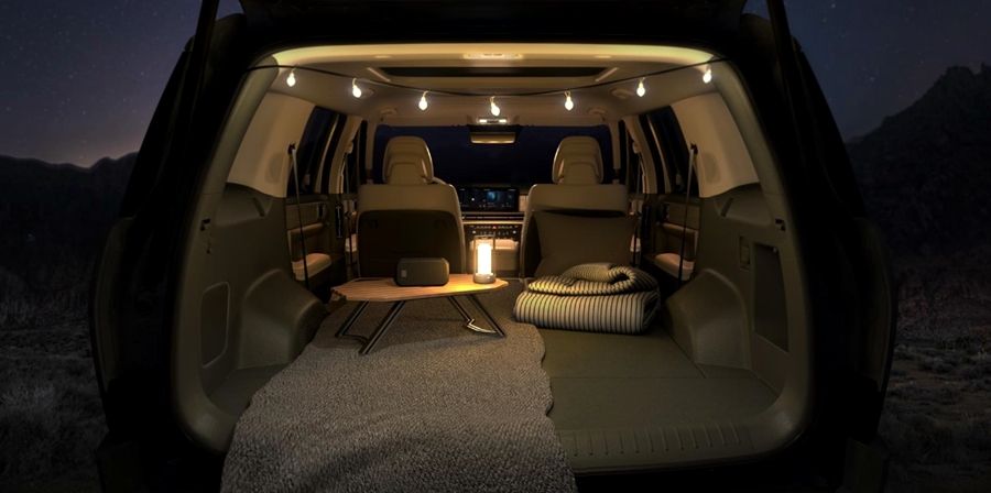 차량이 커진 만큼, 이제는 더욱 넉넉한 실내 공간을 만나보실 수 있는데요. 요즘 추세에 맞는 아웃도어 라이프를 즐기기 적합한 모습이에요. 2열과 3열까지 시트를 폴딩 하게 될 경우에는 동급에서 만나볼 수 없는 최고 수준의 실내 공간을 보여주고 있어요.