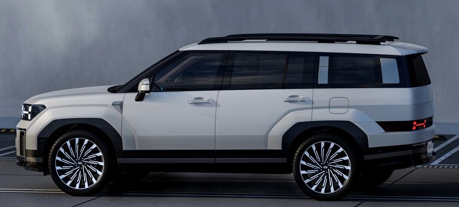 측면부 디자인은 네모 모형의 박스카를 연상시키는데요. 더욱 커진 바디 사이즈로 인해, 상위 모델인 현대 팰리세이드를 위협하는 차체 크기를 자랑하고 있어요. 직각에 가까운 모습으로 후면에서 내려오는 존재감은 차량의 크기가 웅장하다는 것을 알 수 있어요.