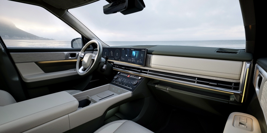 신형 싼타페 풀체인지 실내에서 가장 눈에 들어오는 부분은 디스플레이겠죠. 12.3인치 클라스터와 12.3인치 디스플레이가 통일된 느낌을 주는 파노라믹 커브드 디스플레이를 적용하여 시인성 높은 차량의 실내를 감상하실 수 있으며, 기존의 버튼식 변속레버에서 전자식 변속 컬럼으로 변경하면서 공간 활용도가 더욱 높아진 모습을 보여주고 있어요. 또한, 센터 콘솔 하단부 공간도 사용할 수 있게 제작이 되었고, 대시보드의 공간도 한층 더 살리면서 공간 활용성을 극대화하여 소비자들의 편의성을 더욱 높여줬어요.